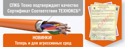 По результатам успешно проведенных испытаний Компания «СПКБ Техно» вновь получила Сертификат Соответствия на ключевую продукцию – кабели симметричные парной скрутки ТЕХНОКСБ®