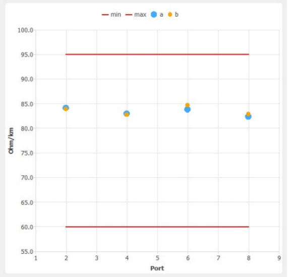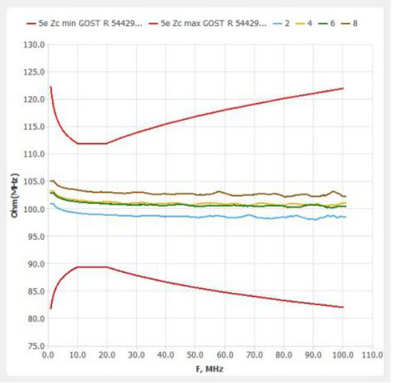 Совокупность конструктивных параметров, определяющих импеданс пар 5e-кабелей подобрана и технологически обеспечена. Это свойство позволит Заказчику TechnoLAN (Потребителю СКС-кабельной продукции) располагать максимально возможным запасом при Fluke-паспортизации по ГОСТ Р 53245 линков, каналов и патч-кордов в монтируемой Заказчиком СКС