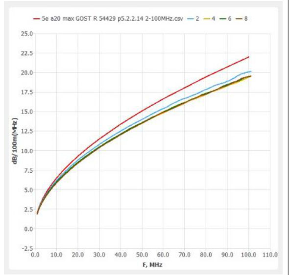 Важнейший параметр СКС-кабеля – погонное затухание выдержан с запасом, потенциально позволяющим применить жилу с сопротивлением на 3…6% большим, чем использована в проверенном образце. То есть прецизионный контроль СКС-кабельной продукции позволит обеспечить экономию меди на 3…6% в кабельной продукции TechnoLAN