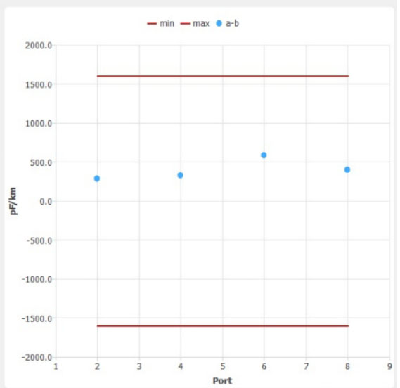 Емкостная асимметрия жил в парах U/UTP-5e-кабеля TechnoLAN практически соответствует емкостной асимметрии экранированных пар в S/FTP-кабеле кат.7A. Это второй раз подтверждает готовность производства к выпуску СКС-продукции следующих категорий
